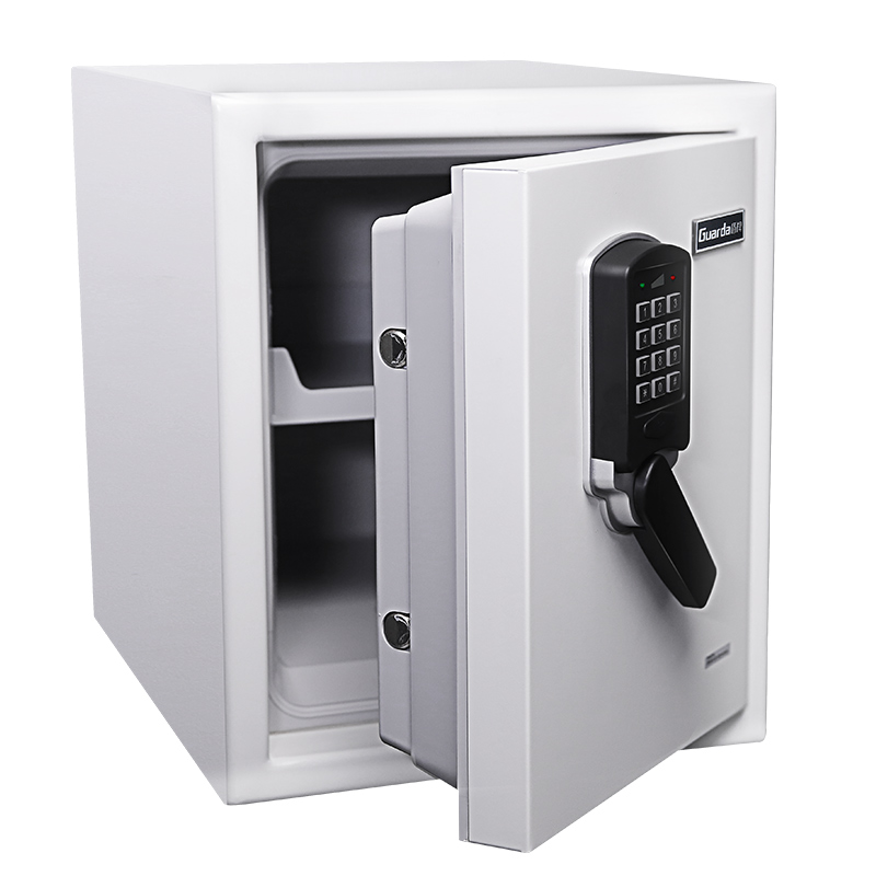 The 3091SD-BD Fire and Waterproof safe with digital keypad lock helps to protect valuables against theft, water and fire. Fire protection on this sturdy safe is UL certified and water protection helps to keep content dry in the event of floods. Access is controlled by a digital keypad lock and safe contents are additionally secured against theft with concealed pry resistant hinges and solid bolts. The safe can be bolted down with the bolt-down feature while maintaining fire and water protection. Featuring a capacity of 0.91 cubic feet / 25 liters, this safe offers sufficient space to store those important documents and precious belongings. Other sizes are available in this series line up to cater for storage or placement needs.